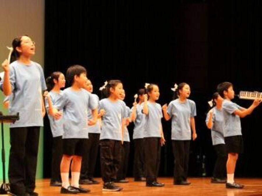 第2部のアトラクションでは、まずヨガ・インストラクターの森和世さんの指導の下、出席者全員で軽体操を行って身体をほぐしました。次いで、福野ひまわり保育園と福野おひさま保育園の園児たちが「365歩のマーチ」のお遊戯を披露。メインイベントでは、アンサンブル サンベリーナとなみの皆さんが美しい合唱で会場を酔わせ、友情出演した福野出身の童謡歌手、古瀬ゆうきさんも澄み切った歌声を響かせてくれました。