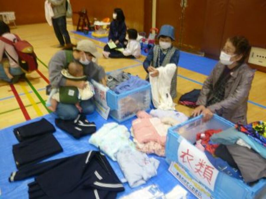 また、同時開催した「リユースフェスタ」では、住民の皆様に無料で譲っていただいた子供用品・用具を展示し、ほしい方に無料でお渡ししました。制服をはじめ、衣類やぬいぐるみなど今回はほぼ未使用やきれいに洗濯された用品・用具が多く、快く提供していただいた方々に感謝申し上げます。おかげさまで、多くの来場者に喜んでいただけました。次回は3月の文化祭・もちつき大会に合わせて開催する予定です。